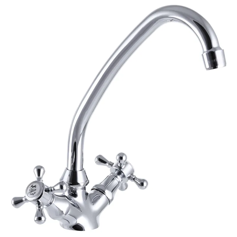 Корпус класичного змішувача для кухні EUROPRODUCT MF 271 виконаний з термостійкої латуні: матеріал не виділяє шкідливих речовин, витримує механічну дію, не піддається корозії. Верхній шар – хром, надає влаштуванню естетичної привабливості та захищає від дрібних пошкоджень. За подачу та регулювання напору води у моделі змішувача EUROPRODUCT MF 271, виконаного в класичному стилі, відповідають дві керамічні кран-букси (одна на холодну, друга – на гарячу воду). Цей тип арматури перевершує рішення з гумовим ущільнювачем за показниками зносостійкості та надійності.